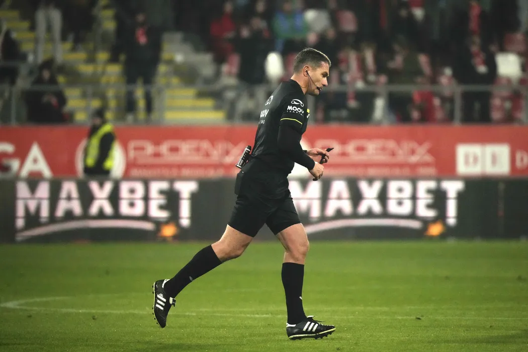 Arbitrul central Istvan Kovacs in meciul de fotbal dintre UTA Arad si FC CFR 1907 Cluj, contand pentru Superliga Superbet, desfasurat pe Arena Francisc Neuman din Arad, luni 10 februarie 2025. © FOTO: Alexandra Fechete/SPORT PICTURES