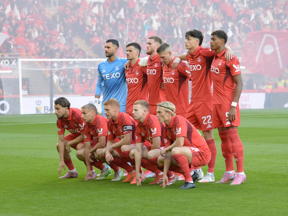 Fotbalistii scotieni la o fotografie de grup realizata inaintea meciului de fotbal dintre FC Aberdeen si FCSB, contand pentru Play-Off UEFA Europa League, desfasurat pe Pittodrie Stadium din Aberdeen, joi 21 august 2025. © FOTO:Alexandra Cristina Grigorescu/SPORT PICTURES