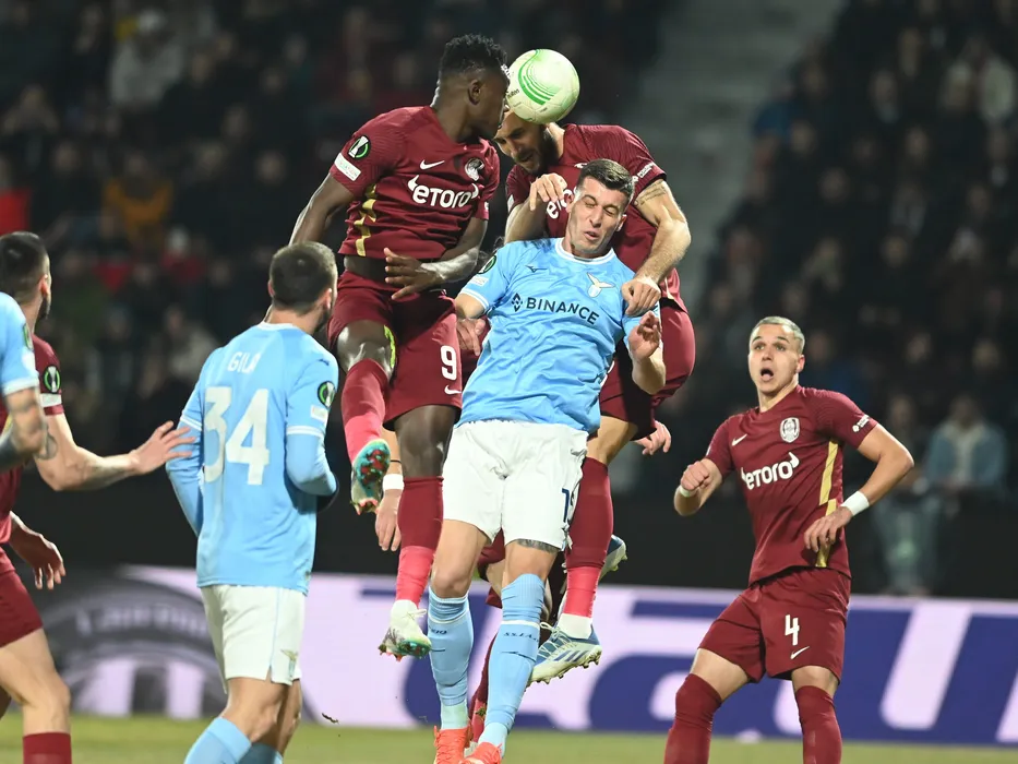 Cephas Malele, Nicolò Casale si Cristian Marian Manea in meciul de fotbal dintre CFR Cluj si SS Lazio, din cadrul UEFA Europa Conference League, desfasurat pe Stadionul Dr. Constantin Radulescu din Cluj Napoca, joi 23 februarie 2023. © FOTO:Razvan Pasarica/SPORT PICTURES