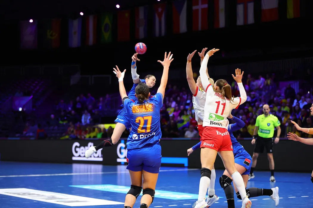 Sorina-Maria Grozav in meciul de handbal feminin dintre Danemarca si Romania, contand pentru Campionatul Mondial de Handbal Feminin 2025, desfasurat la Ahoy Arena din Rotterdam,luni 1 decembrie 2025. © FOTO:Sorin Pana/SPORT PICTURES