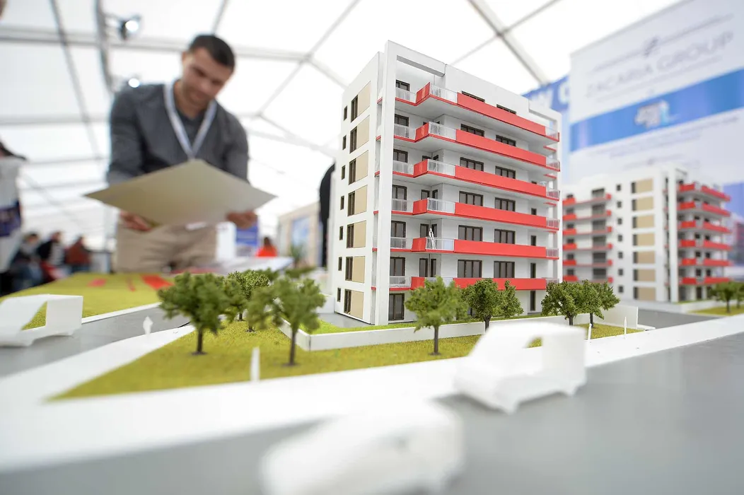 Vizitatorii privesc machete de locuinte cuprinse in ofertele dezvoltatorilor, vineri 21 Octombrie 2016, la Targul Imobiliar National deschis in Piata Constitutiei din Capitala. ALEXANDRU DOBRE/MEDIAFAX FOTO