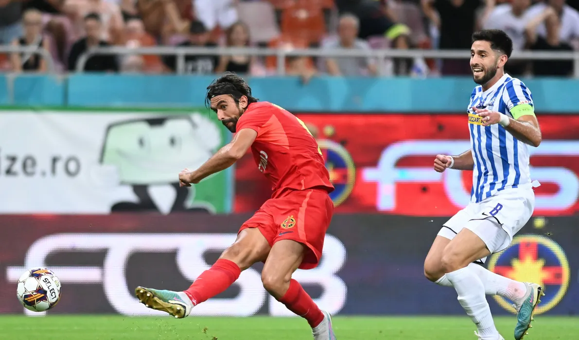 Andrea Compagno si Nicolas Samayoa in meciul de fotbal dintre FCSB si Politehnica Iasi, din cadrul Superligii Superbet, desfasurat pe Arena Nationala din Bucuresti, duminica 20 august 2023. © FOTO:Razvan Pasarica/SPORT PICTURES