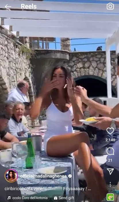 Ce gafă monumentală era să comită Mădălina Ghenea din cauza rochiei despicate! Fosta iubită a lui Dimitrov s-a urcat pe masă, înconjurată de bărbați, dar vestimentația i-a jucat feste și a fost la un pas să lase la vedere mult prea mult. GALERIE FOTO