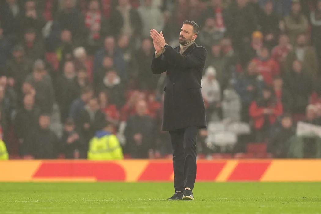10 November 2024, United Kingdom, Manchester: Manchester United interim manager Ruud van Nistelrooy applauds the fans after the English Premier League soccer match between Manchester United and Leicester City at Old Trafford. Photo: Martin Rickett/PA Wire/dpa
