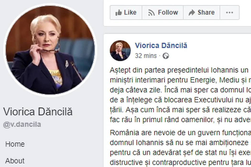 Ce îi cere Dăncilă președintelui României Klaus Iohannis
