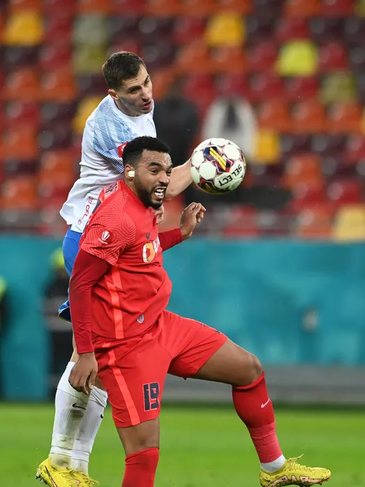 Ionut Justinian Larie si Abdel Slem Billel Omrani in meciul de fotbal dintre FCSB si Farul Constanta, contand pentru Superliga Superbet, desfasurat pe Arena Nationala din Bucuresti, duminica 29 ianuarie 2023. © FOTO:Razvan Pasarica/SPORT PICTURES