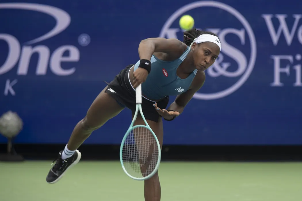 August 15, 2024, Mason, Oh, USA: 2024 Cincinnati Open Tennis, 2024 08 15 - Coco Gauff serves a ball against opponent Yulia Putintseva. Photo by Wally Nell/ZUMAPress,Image: 899075309, License: Rights-managed, Restrictions: , Model Release: no