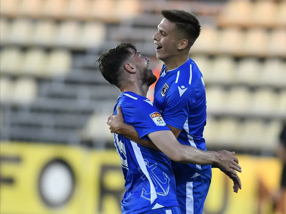 Bucurie a fotbalistilor de la Voluntari cu Claudiu Belu Iordache si Ion Gheorghe in meciul de fotbal dintre FC Voluntari si Chindia Targoviste, contand pentru play-out-ul Ligii 1 Casa Pariurilor, disputat fara spectatori pe Stadionul Anghel Iordanescu din Voluntari, miercuri 1 iulie 2020.© FOTO:Razvan Pasarica/SPORT PICTURES