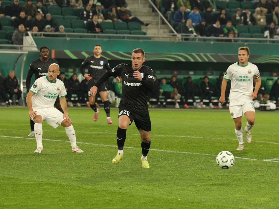 Alexandru Cicaldau in meciul dintre SK Rapid Viena si Universitatea Craiova, contand pentru UEFA Conference League, desfasurat pe Weststadion din Viena, joi 6 noiembrie 2025. © FOTO:Ionut Stanca/SPORT PICTURES