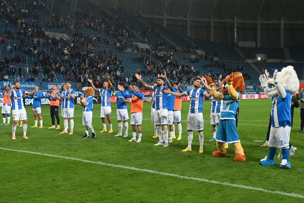 Fotbalistii craioveni saluta galeria dupa meciul de fotbal dintre Universitatea Craiova si FCSB, contand pentru Superliga Superbet, desfasurat pe Stadionul Ion Oblemenco din Craiova, duminica 18 septembrie 2022. © FOTO:Razvan Pasarica/SPORT PICTURES