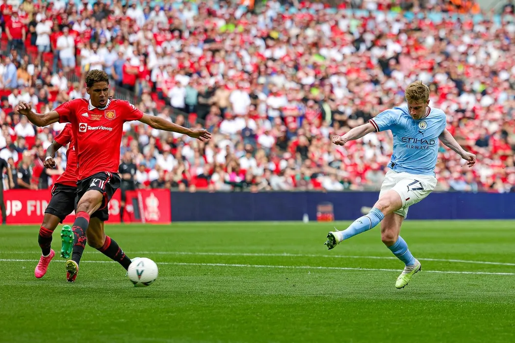 Manchester City v Manchester United, FA Cup., Cup Final - 03 Jun 2023,Image: 781209943, License: Rights-managed, Restrictions: EDITORIAL USE ONLY No use with unauthorised audio, video, data, fixture lists (outside the EU), club/league logos or "live" services. Online in-match use limited to 45 images (+15 in extra time). No use to emulate moving images. No use in betting, games or, Model Release: no