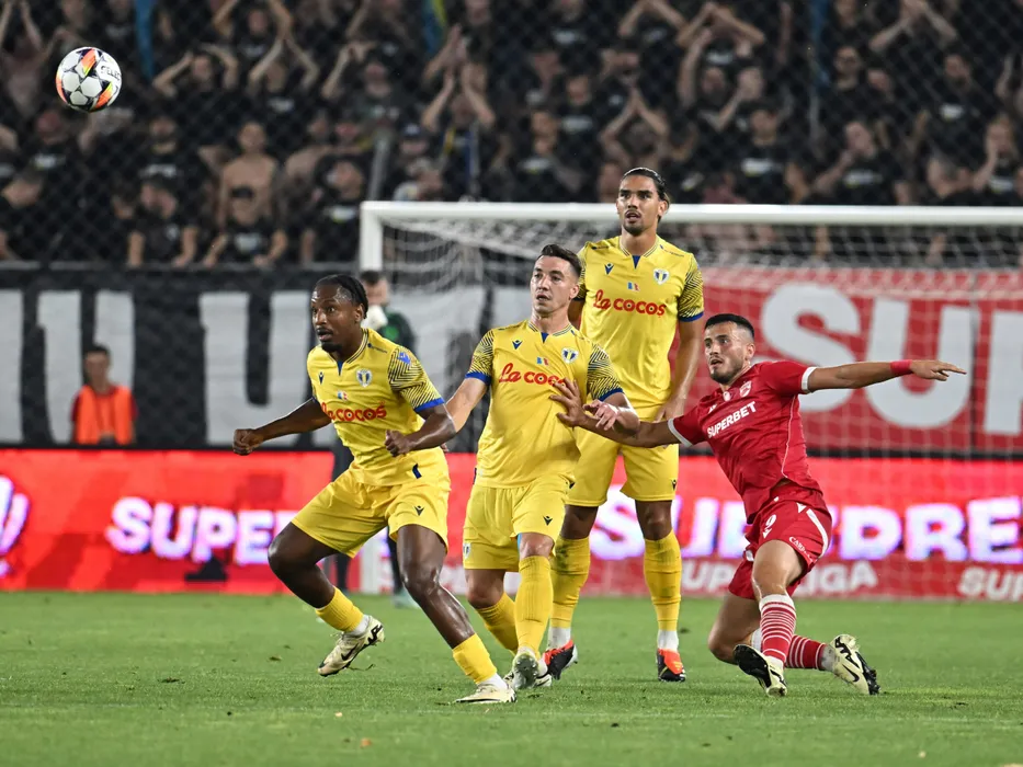 Tidiane Keita, Alexandru Mateiu, Marian Fernando Huja si Selmani Astrit in meciul de fotbal dintre Dinamo Bucuresti si Petrolul Ploiesti, din cadrul Superligii Superbet, desfasurat pe Stadionul National Arcul de Triumf din Bucuresti, duminica 21 iulie 2024. © FOTO:Razvan Pasarica/SPORT PICTURES