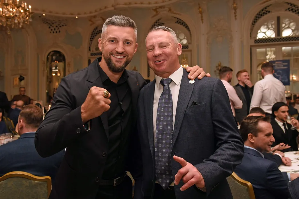 Carl Froch and Bob Williams during the Boxing Writers Club Awards Dinner at the Savoy Hotel on 9th October 2023