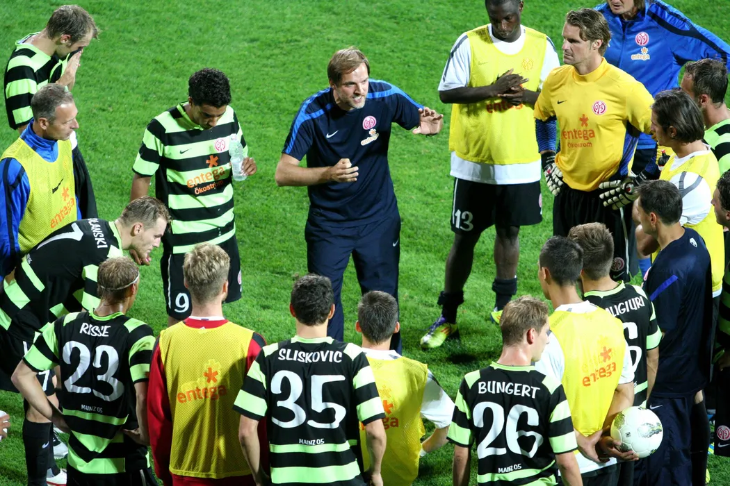 Antrenorul principal, Thomas Tuchel, de la FSV Mainz (Germania), da indicatii jucatorilor, in pauza meciului cu Gaz Metan Medias, din mansa secunda a turului trei preliminar al Ligii Europa, in Medias, joi, 4 august 2011. OVIDIU DUMITRU MATIU / MEDIAFAX FOTO