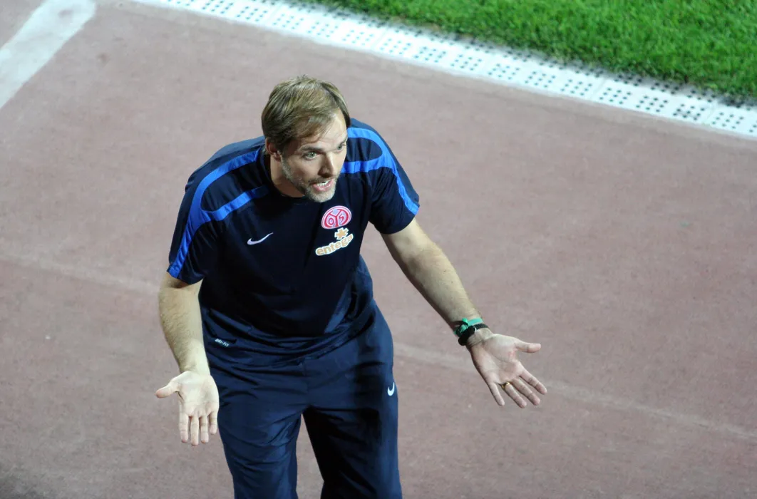 Antrenorul principal, Thomas Tuchel, de la FSV Mainz (Germania), reactioneaza in timpul meciului cu Gaz Metan Medias, din mansa secunda a turului trei preliminar al Ligii Europa, in Medias, joi, 4 august 2011. OVIDIU DUMITRU MATIU / MEDIAFAX FOTO
