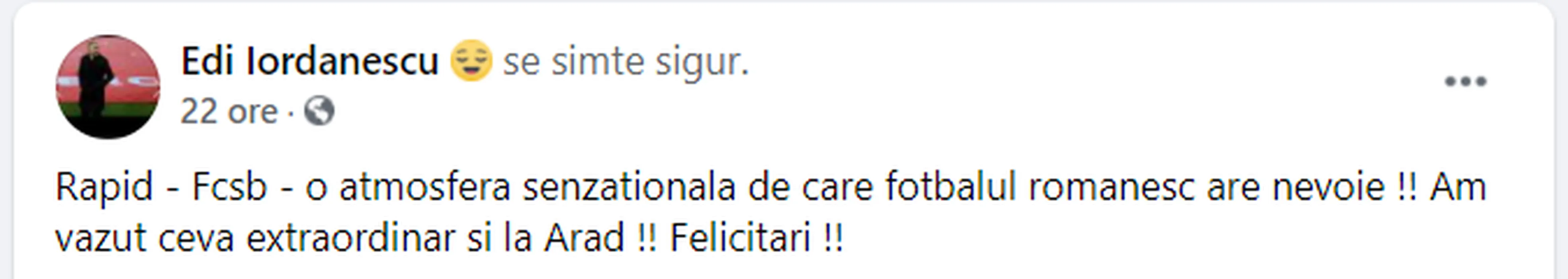 Ce mesaj a postat Edi Iordănescu pe Facebook înainte să accepte să preia FCSB. „Pot face performanță, dar fiecare cu rolul lui!” | FOTO