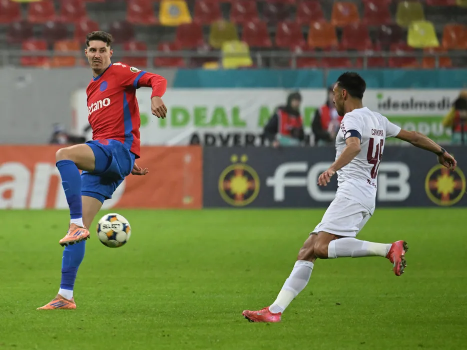 David Raul Miculescu si Mario Camora (Malico Paulino Mario Jorge) in meciul de fotbal dintre FCSB si CFR Cluj, contand pentru Superliga Superbet, desfasurat pe Arena Nationala din Bucuresti, duminica 25 ianuarie 2026. © FOTO:Razvan Pasarica/SPORT PICTURES