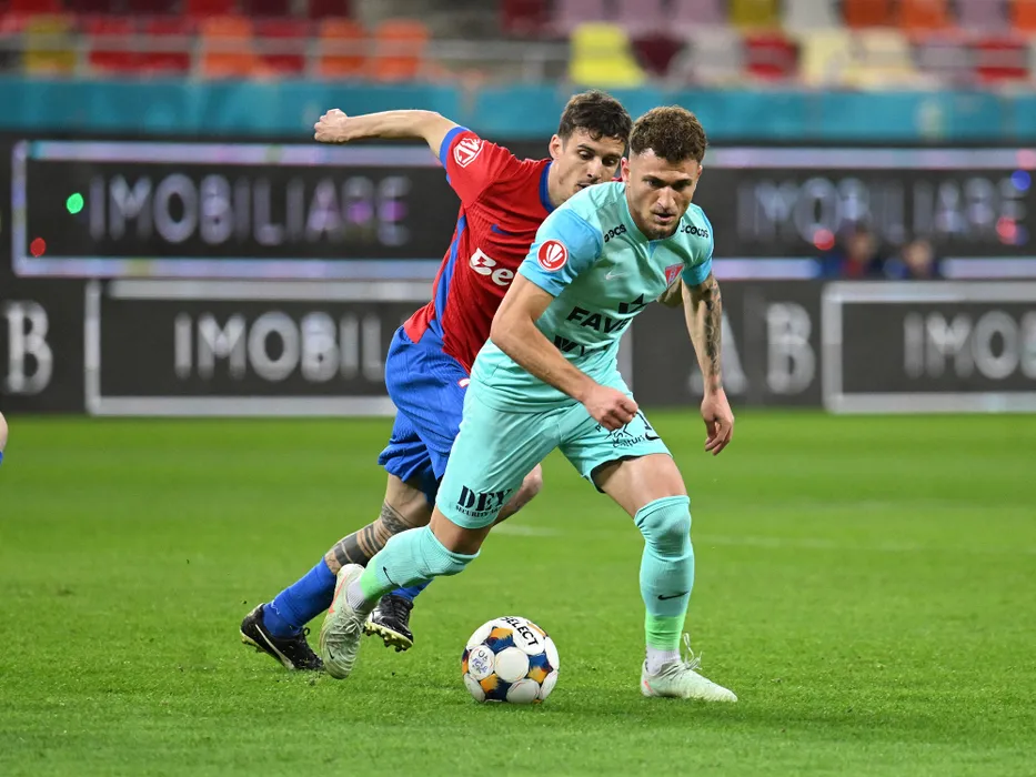Marinos Tzioni si Juri Cisotti in meciul de fotbal dintre FCSB si UTA Arad, contand pentru Play out-ul Superligii Superbet, desfasurat pe Arena Nationala din Bucuresti, vineri 20 martie 2026. © FOTO:Razvan Pasarica/SPORT PICTURES