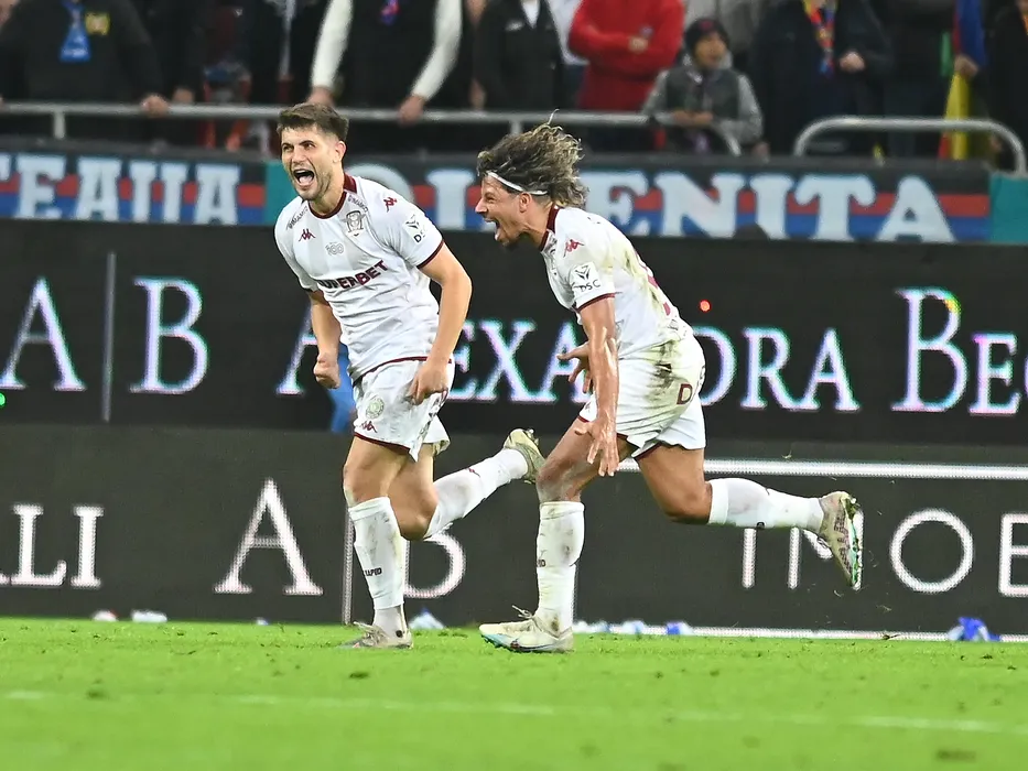 Paul Alexandru Iacob si Jayson Jordan Julien Romain Papeau se bucura dupa un gol marcat in meciul de fotbal dintre FCSB si Rapid Bucuresti, din cadrul Superligii Superbet, desfasurat pe Arena Nationala din Bucuresti, duminica 5 noiembrie 2023. © FOTO:Razvan Pasarica/SPORT PICTURES