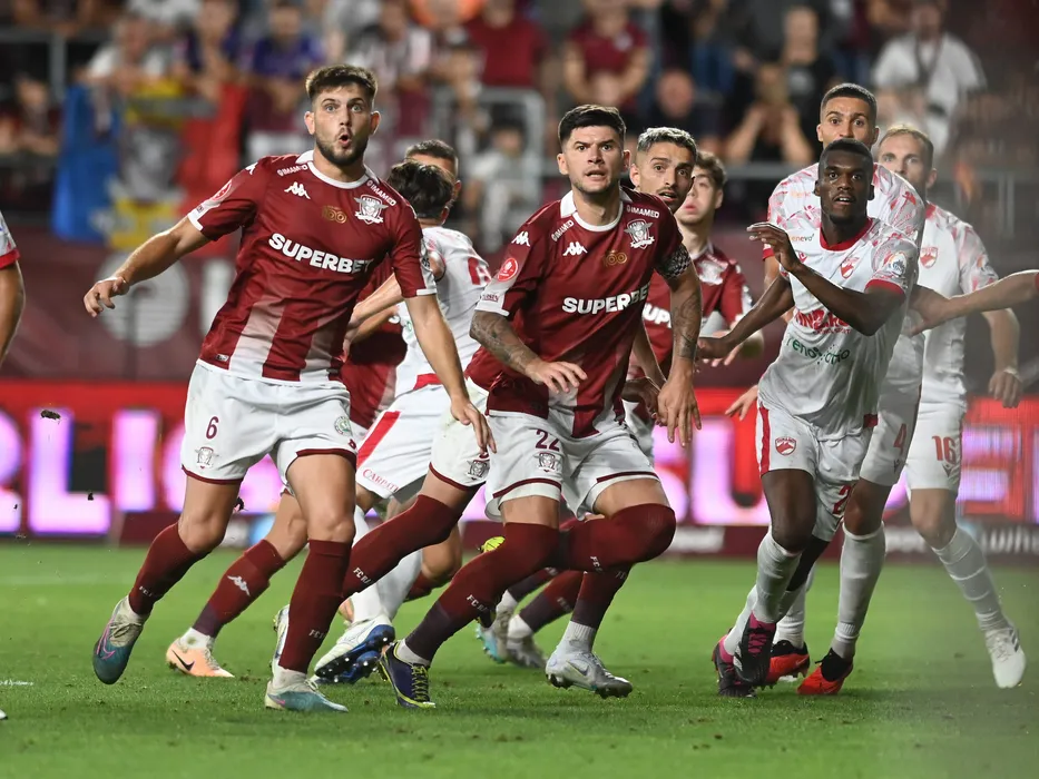Paul Alexandru Iacob, Cristian Ionut Sapunaru, Albion Rrahmani,Razvan Constantin Oaida,Nelut Stelian Rosu, Josue Francis Homawoo, Quentin Alexandre Julien Bena si Razvan Bogdan Patriche Nichita in meciul de fotbal dintre Rapid Bucuresti si Dinamo Bucuresti, din cadrul Superligii Superbet, desfasurat pe Superbet Arena-Giulesti din Bucuresti, vineri 1 septembrie 2023. © FOTO:Razvan Pasarica/SPORT PICTURES