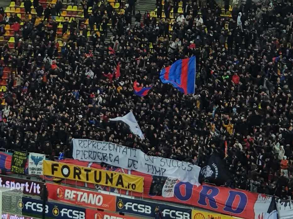 Ce nu s-a văzut la TV! Show în peluze și mesaje inedite din partea galeriilor lui FCSB și FC U Craiova! Ce au putut scrie | FOTO