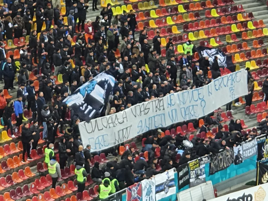 Ce nu s-a văzut la TV! Show în peluze și mesaje inedite din partea galeriilor lui FCSB și FC U Craiova! Ce au putut scrie | FOTO