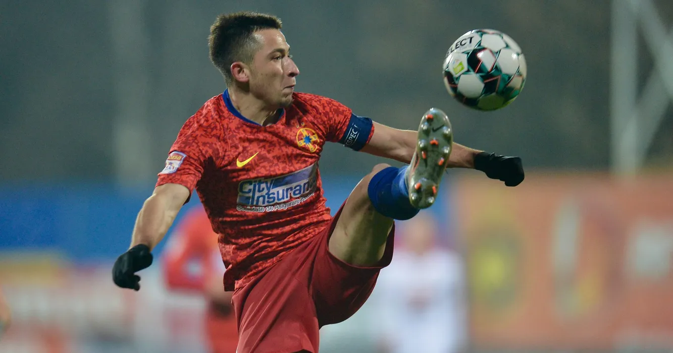 Olimpiu Morutan (S), de la FCSB, suteaza in timpul meciului de fotbal contra echipei Sepsi OSK din etapa a XV-a a Ligii 1, disputat pe Arena Nationala, duminica, 20 decembrie 2020. EDUARD VINATORU / MEDIAFAX FOTO