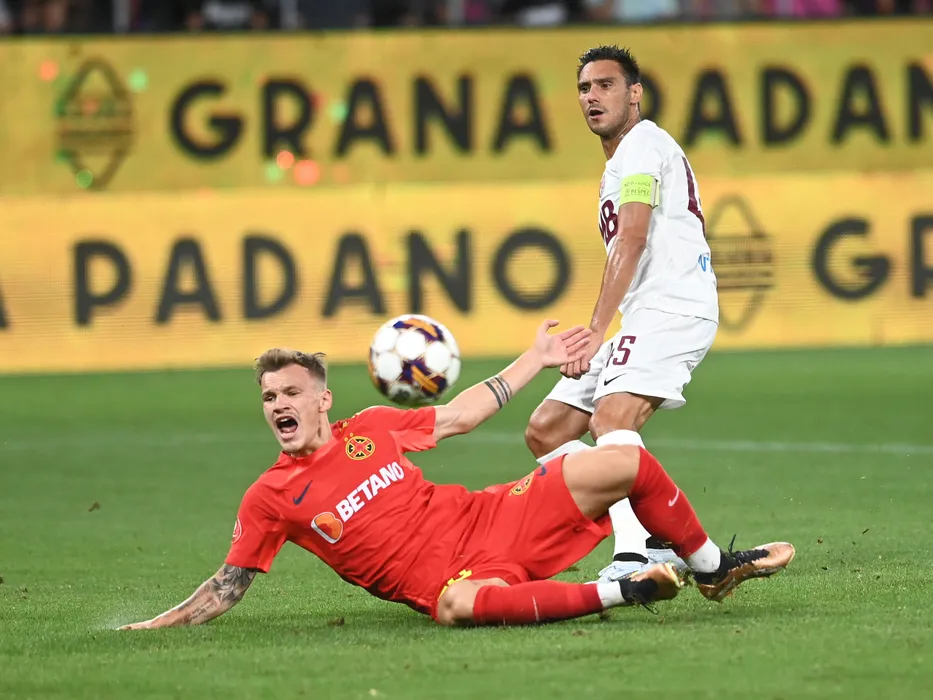 Grigoras Alexandru Pantea si Mario Camora (Malico Paulino Mario Jorge) in meciul de fotbal dintre FCSB si CFR Cluj, din cadrul Superligii Superbet, desfasurat pe Stadionul Steaua-Ghencea din Bucuresti, duminica 6 august 2023. © FOTO:Razvan Pasarica/SPORT PICTURES