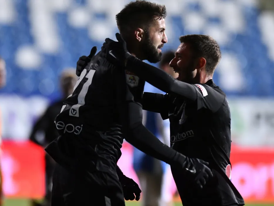 Alin Dobrosavlevici se bucura alaturi de Carlo Roberto Casap dupa un gol marcat in meciul de fotbal dintre CSM Politehnica Iasi si FC Viitorul Constanta, contand pentru Liga 1 Casa Pariurilor, desfasurat fara spectatori pe Stadionul Emil Alexandrescu din Iasi, duminica 1 noiembrie 2020. © FOTO:Razvan Pasarica/SPORT PICTURES