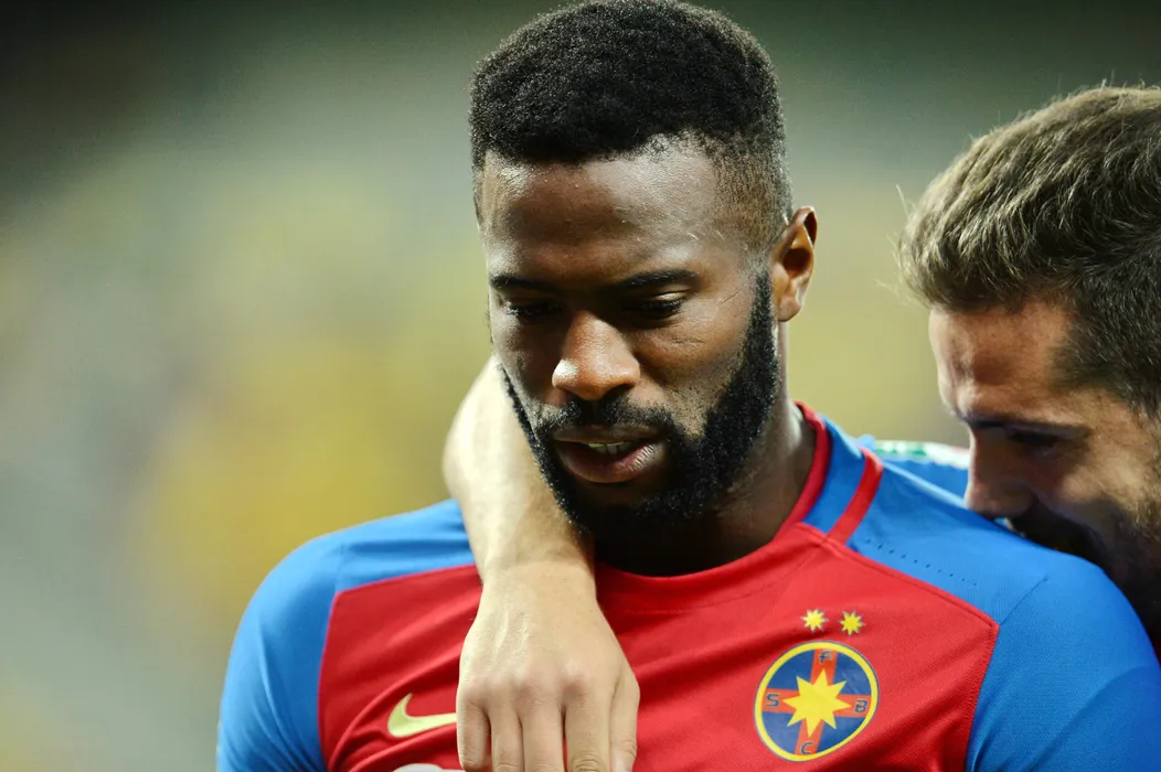Fernando Varela, de la Steaua, reactioneaza dupa inscrierea unui gol in timpul meciului de fotbal contra echipei Viitorul Constanta din play-off-ul Ligii 1, disputat pe stadionul Arena Nationala din Bucuresti, sambata, 23 aprilie 2016. ALEXANDRU DOBRE / MEDIAFAX FOTO