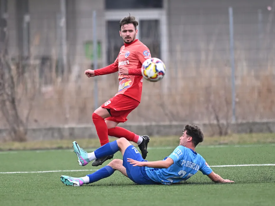 Daniel Benzar si Claudiu Dinache in meciul de fotbal dintre Progresul Spartac Bucuresti si Gloria Buzau, contand pentru Liga a-2-a Casa Pariurilor, desfasurat pe Terenul sintetic din cadrul Centrului National de Fotbal de la Buftea, duminica 25 februarie 2024. © FOTO:Razvan Pasarica/SPORT PICTURES