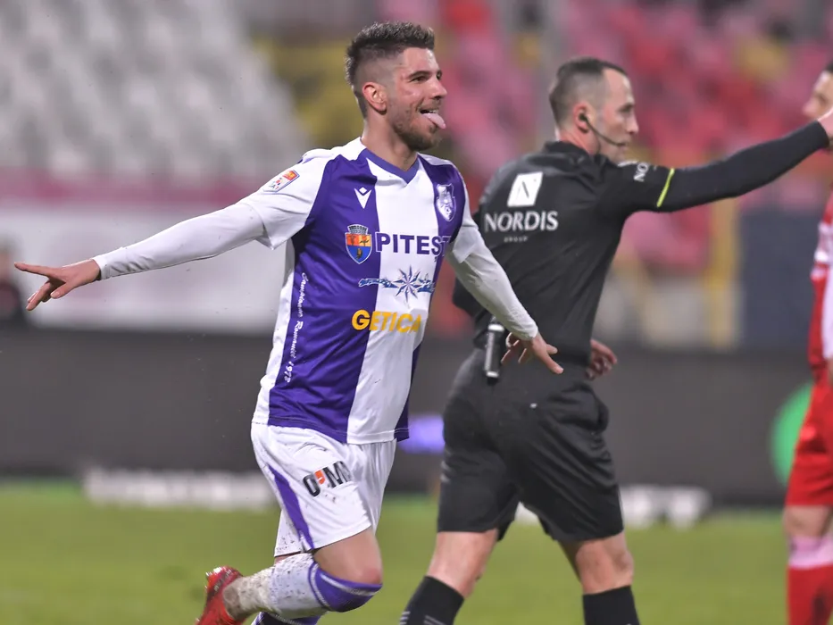 Robert Ionut Grecu se bucura dupa un gol marcat in meciul de fotbal dintre Dinamo Bucuresti si FC Arges, contand pentru Liga 1 Casa Pariurilor, desfasurat fara spectatori pe Stadionul Dinamo din Bucuresti, luni 15 martie 2021. © FOTO:Razvan Pasarica/SPORT PICTURES