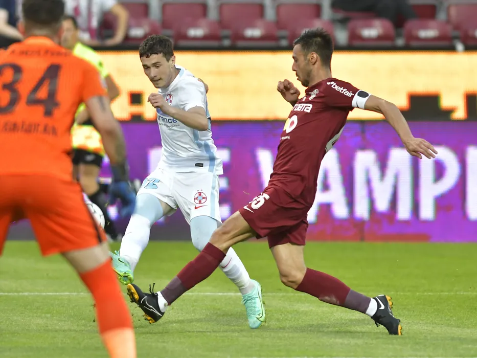 Adrian Romeo Nita si Mario Camora in meciul de fotbal dintre CFR Cluj si FCSB, contand pentru Play-off-ul Ligii 1 Casa Pariurilor, desfasurat pe Stadionul Dr. Constantin Radulescu din Cluj Napoca, marti 25 mai 2021. © FOTO:Razvan Pasarica/SPORT PICTURES
