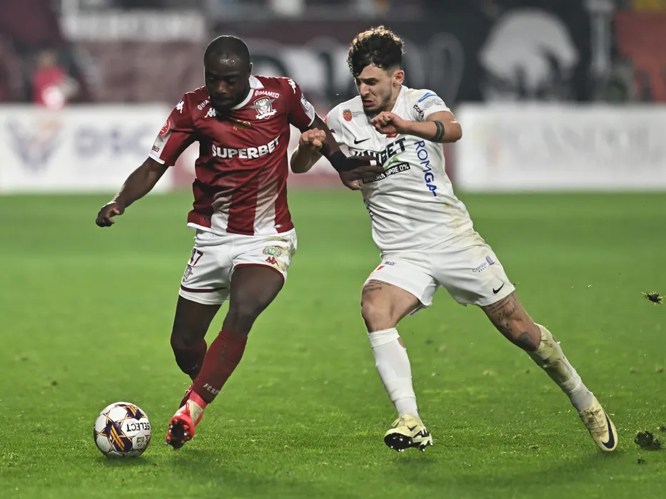 Christopher Braun si Ianis Stoica in meciul de fotbal dintre Rapid Bucuresti si FC Hermanstadt, din cadrul Superligii Superbet, desfasurat pe Superbet Arena-Giulesti din Bucuresti, vineri 16 februarie 2024. © FOTO:Razvan Pasarica/SPORT PICTURES