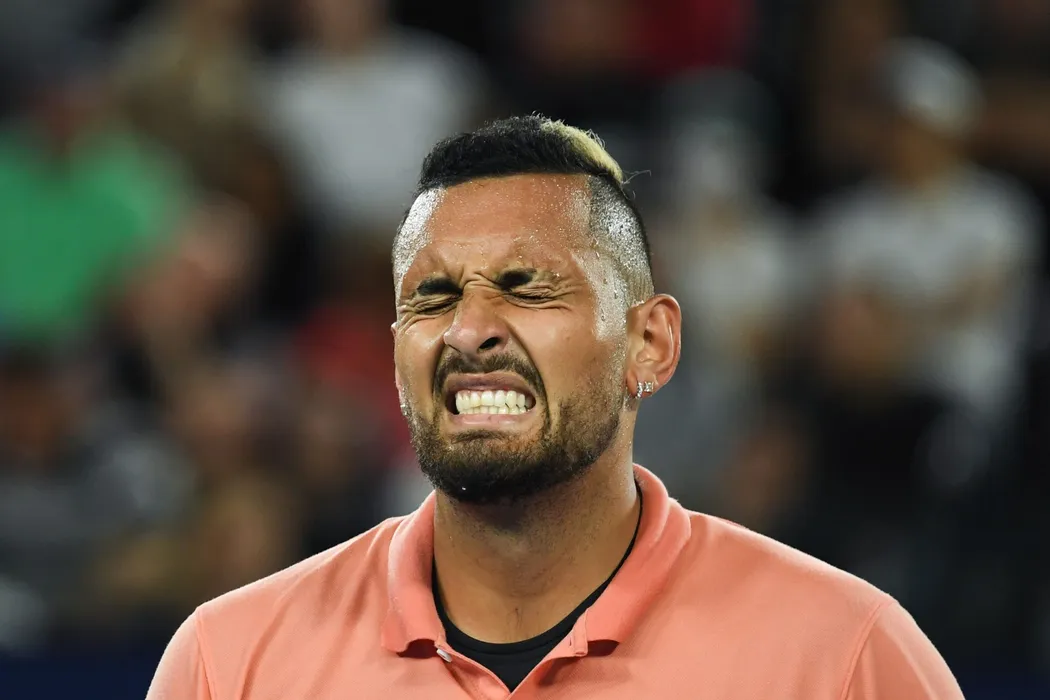 MELBOURNE, Jan. 27, 2020 Nick Kyrgios of Australia reacts during the Men's Singles 4th Round match between Rafael Nadal of Spain and Nick Kyrgios of Australia at the Australian Open tennis championship in Melbourne, Australia, Jan. 27, 2020. (Photo by Bai Xue/Xinhua) (Credit Image: © Bai Xue/Xinhua via ZUMA Wire)
