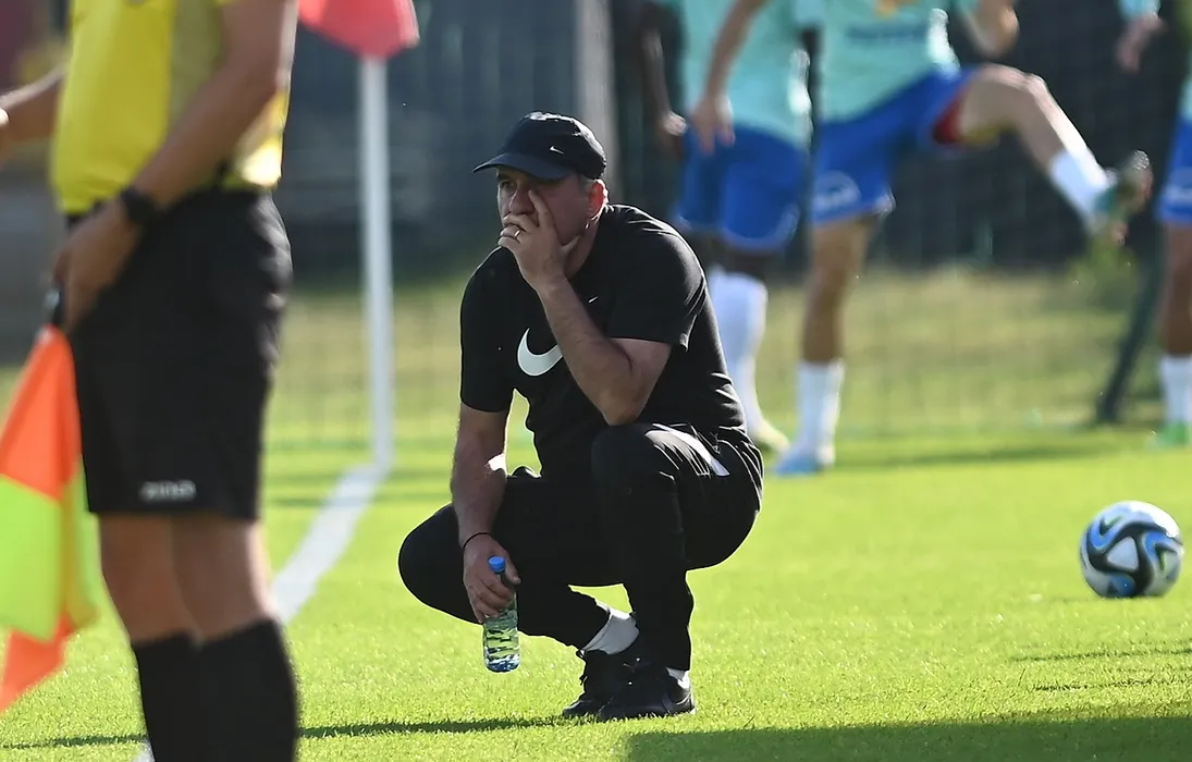 Gheorghe Hagi reactioneaza in meciul amical de fotbal dintre Pogon Szczecin si Farul Constanta, desfasurat la Baza de pregatire de pe langa hotelul Remes din Opalenica, Polonia, joi 29 iunie 2023. © FOTO:Razvan Pasarica/SPORT PICTURES