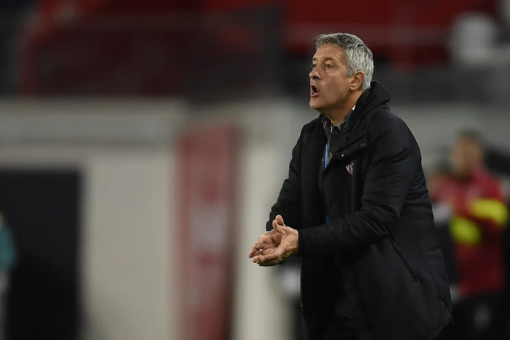 Cristiano Bergodi, antrenorul echipei Sepsi OSK, urmareste meciul de fotbal contra formatiei Dinamo din etapa XIV-a a Ligii 1, disputat pe stadionul Sepsi OSK din Sfantu Gheorghe, duminica, 31 octombrie 2021. ALEX NICODIM / MEDIAFAX FOTO