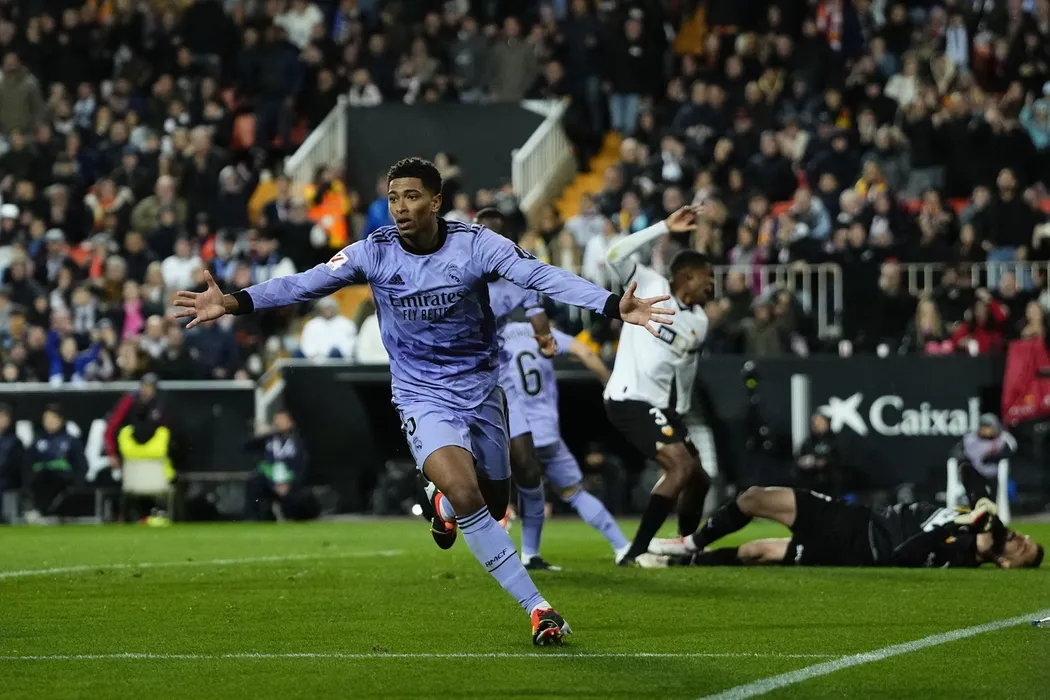 VALENCIA, SPAIN - MARCH 2: Jude Bellingham central midfield of Real Madrid and England reacts after goal disallowed during the LaLiga EA Sports match between Valencia CF and Real Madrid CF at Estadio Mestalla on March 2, 2024 in Valencia, Spain. Jose Hernandez / Anadolu,Image: 853098749, License: Rights-managed, Restrictions: , Model Release: no