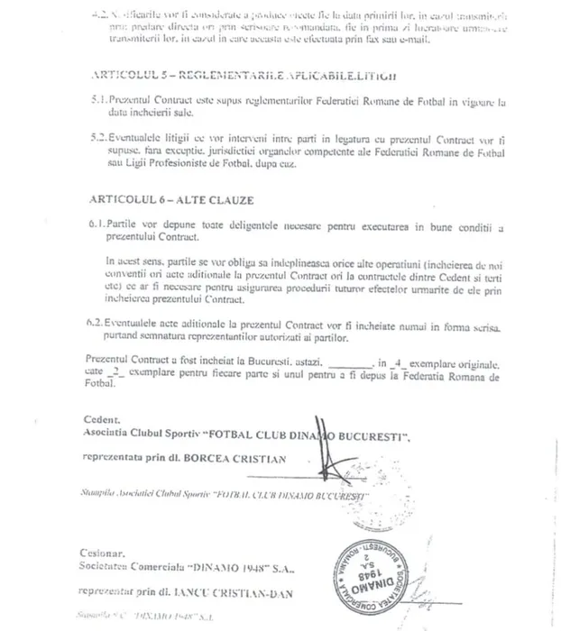 Ce se întâmplă cu stema lui Dinamo: acte în EXCLUSIVITATE! ProSport vă prezintă contractul de cesiune semnat de Cristi Borcea între ACS FC Dinamo și SC Dinamo 1948 SA
