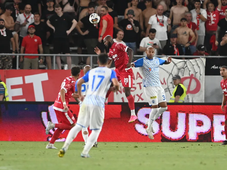 Hakim Djamel Abdallah si Raul Michel Melo Da Silva in meciul de fotbal dintre Dinamo Bucuresti si Universitatea Craiova, din cadrul Superligii Superbet, desfasurat pe Stadionul National Arcul de Triumf din Bucuresti, luni 17 iulie 2023. © FOTO:Razvan Pasarica/SPORT PICTURES