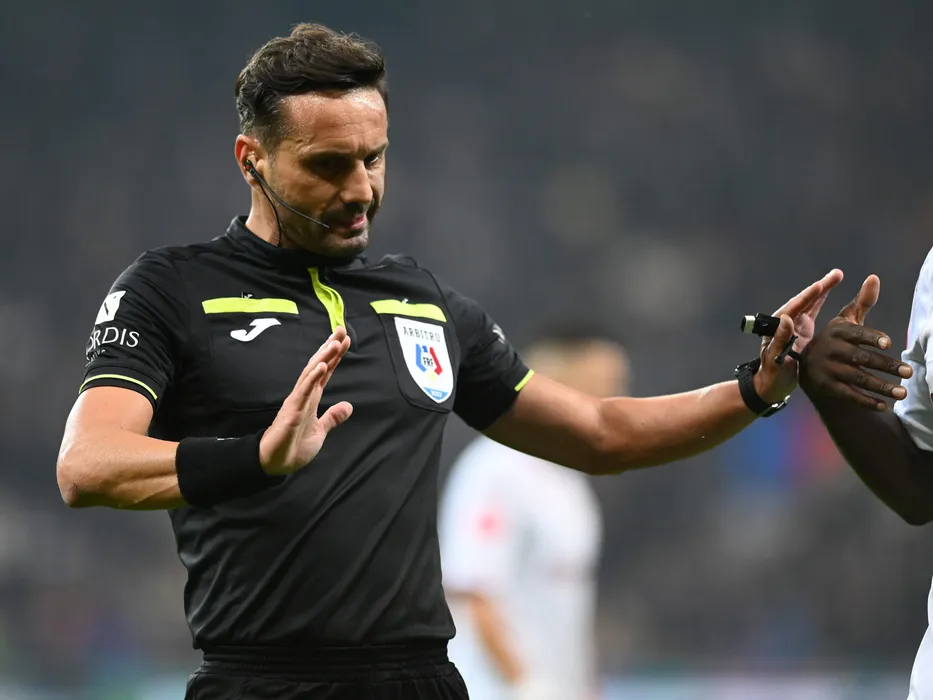Arbitrul central Sebastian Coltescu reactioneaza in meciul de fotbal dintre FCSB si Rapid Bucuresti, din cadrul Superligii Superbet, desfasurat pe Arena Nationala din Bucuresti, duminica 5 noiembrie 2023. © FOTO:Razvan Pasarica/SPORT PICTURES