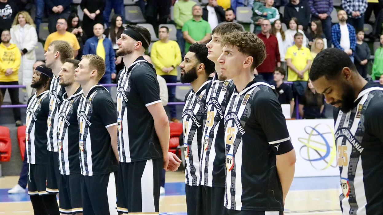Baschetbalistii clujeni la startul meciului de baschet între BC CSU Sibiu si U-BT Cluj-Napoca, contand pentru Liga Nationala de Baschet Masculin GETICA 95, desfasurat în Sala Transilvania din Sibiu, lduminica 16 martie 2025. © FOTO: Valentin Macrea/SPORT PICTURES