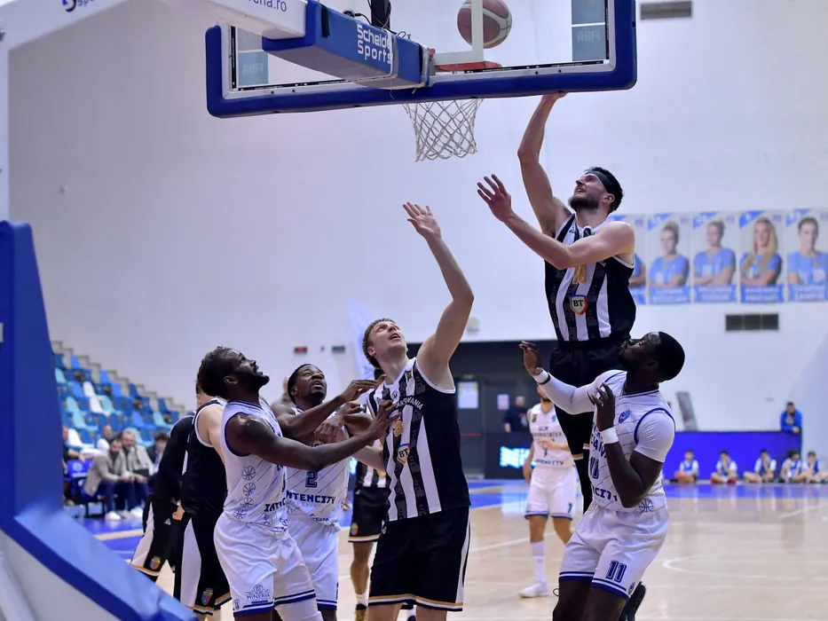 Devante Juwon Brooks, Giordan Lee Watson, Walter Junior Cabral Bieriberi și Zachary Scott Hankins, Mareks Mejeris în meciul de baschet masculin între SCMU Craiova și U-BT Cluj-Napoca, contând pentru Liga Națională de baschet masculin Getica 95, desfășurat în Sala Polivalentă din Craiova, sâmbătă 7 decembrie 2024. © FOTO: Remus BADEA/SPORT PICTURES