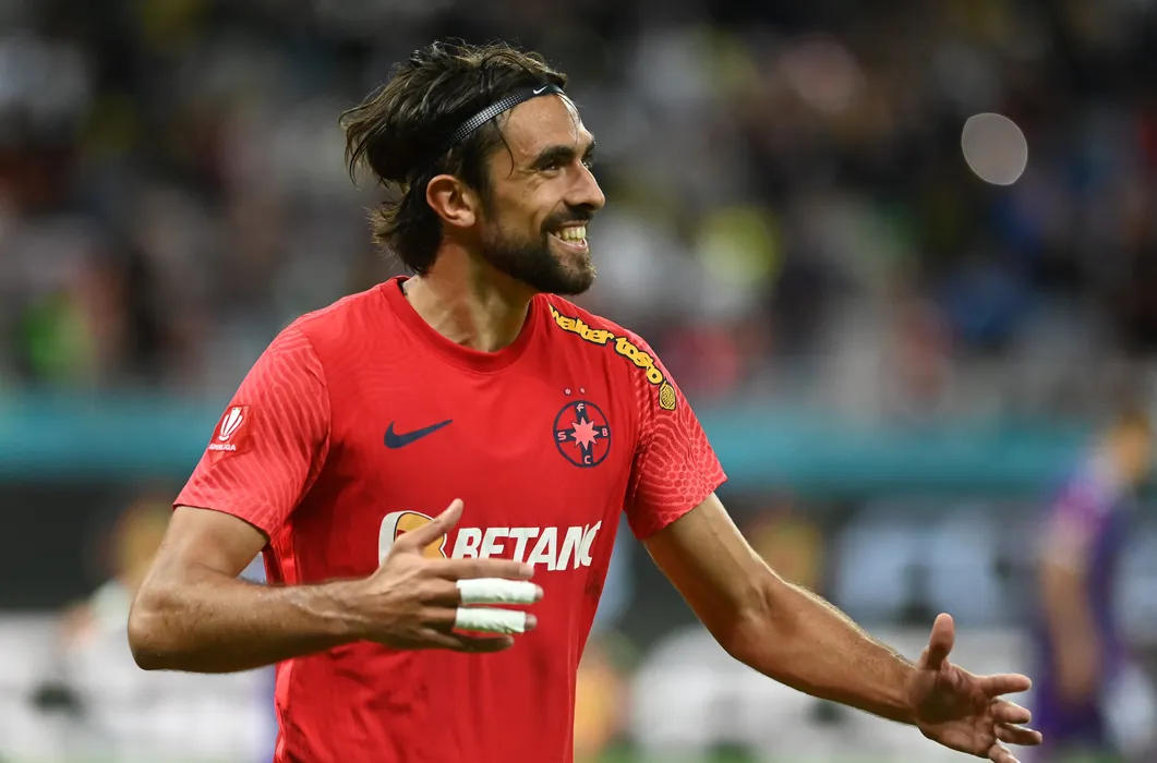 Andrea Compagno se bucura dupa un gol marcat din penalty in meciul de fotbal dintre FCSB si FC Arges, contand pentru Superliga Superbet, desfasurat pe Arena Nationala din Bucuresti, duminica 2 octombrie 2022. © FOTO:Razvan Pasarica/SPORT PICTURES