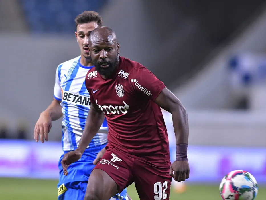 Jovan Markovic si Mike Botuli Cestor in meciul de fotbal dintre Universitatea Craiova si CFR Cluj, contand pentru Cupa Romaniei, desfasurat pe Stadionul Ion Oblemenco din Craiova, joi 23 septembrie 2021. © FOTO:Razvan Pasarica/SPORT PICTURES