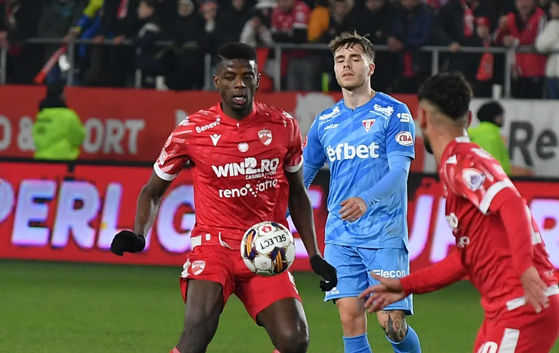Eddy Stelh Gnahore Vhakka și Andrej Fabry în meciul de fotbal dintre Dinamo București și UTA Arad, contând pentru SUPERLIGA SUPERBET, desfășurat pe Stadionul Arcul de Triumf din București, vineri 8 martie 2024. © FOTO: Simion MECHNO/SPORT PICTURES