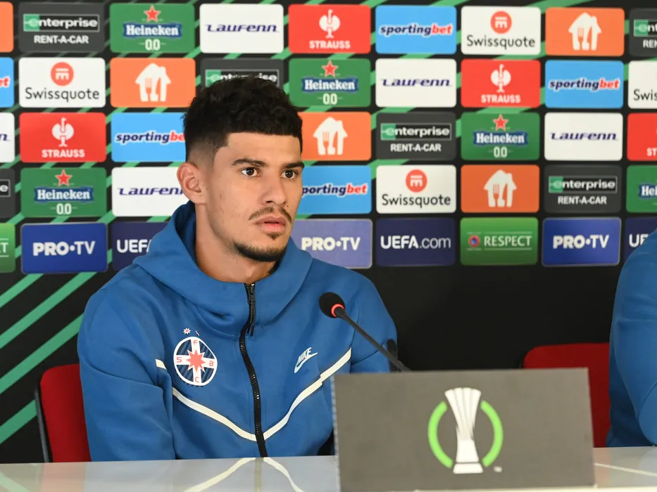Florinel Coman participa la conferinta de presa a celor de la FCSB de dinaintea meciului impotriva lui West Ham United, din cadrul grupelor UEFA Europa Conference League, desfasurata la Baza de antrenament FCSB din Berceni, miercuri 2 nioiembrie 2022. © FOTO:Razvan Pasarica/SPORT PICTURES
