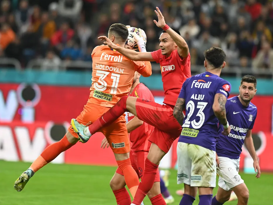 Adrian Gheorghe Sut si Florin Bogdan Stefan in meciul de fotbal dintre FCSB si Rapid Bucuresti, contand pentru Superliga Superbet, desfasurat pe Arena Nationala din Bucuresti, duminica 6 noiembrie 2022. © FOTO:Razvan Pasarica/SPORT PICTURES