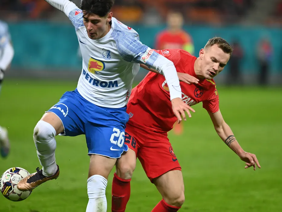 Adrian Mazilu si Grigoras Alexandru Pantea in meciul de fotbal dintre FCSB si Farul Constanta, contand pentru Superliga Superbet, desfasurat pe Arena Nationala din Bucuresti, duminica 29 ianuarie 2023. © FOTO:Razvan Pasarica/SPORT PICTURES