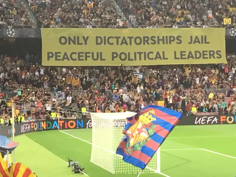 Ce vor să spună fanii Barcelonei cu bannerul afișat în startul meciului: ”Doar dictaturile întemnițează liderii politici pașnici”